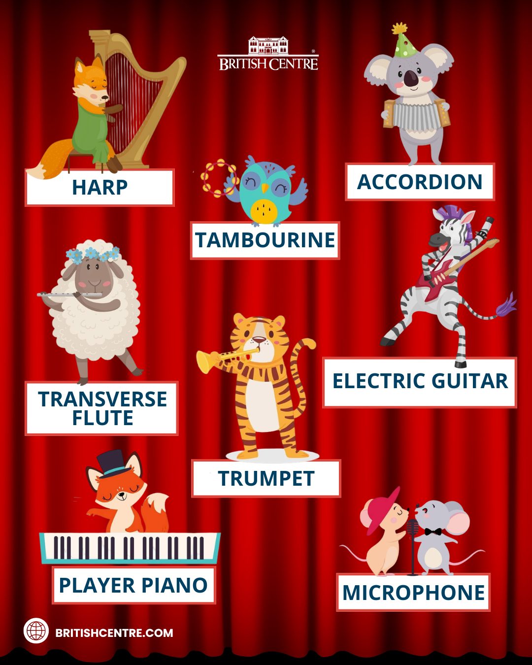In inglese, molti nomi di strumenti sono cognates (parole simili all’italiano come Violin o Piano), ma altri possono trarre in inganno.